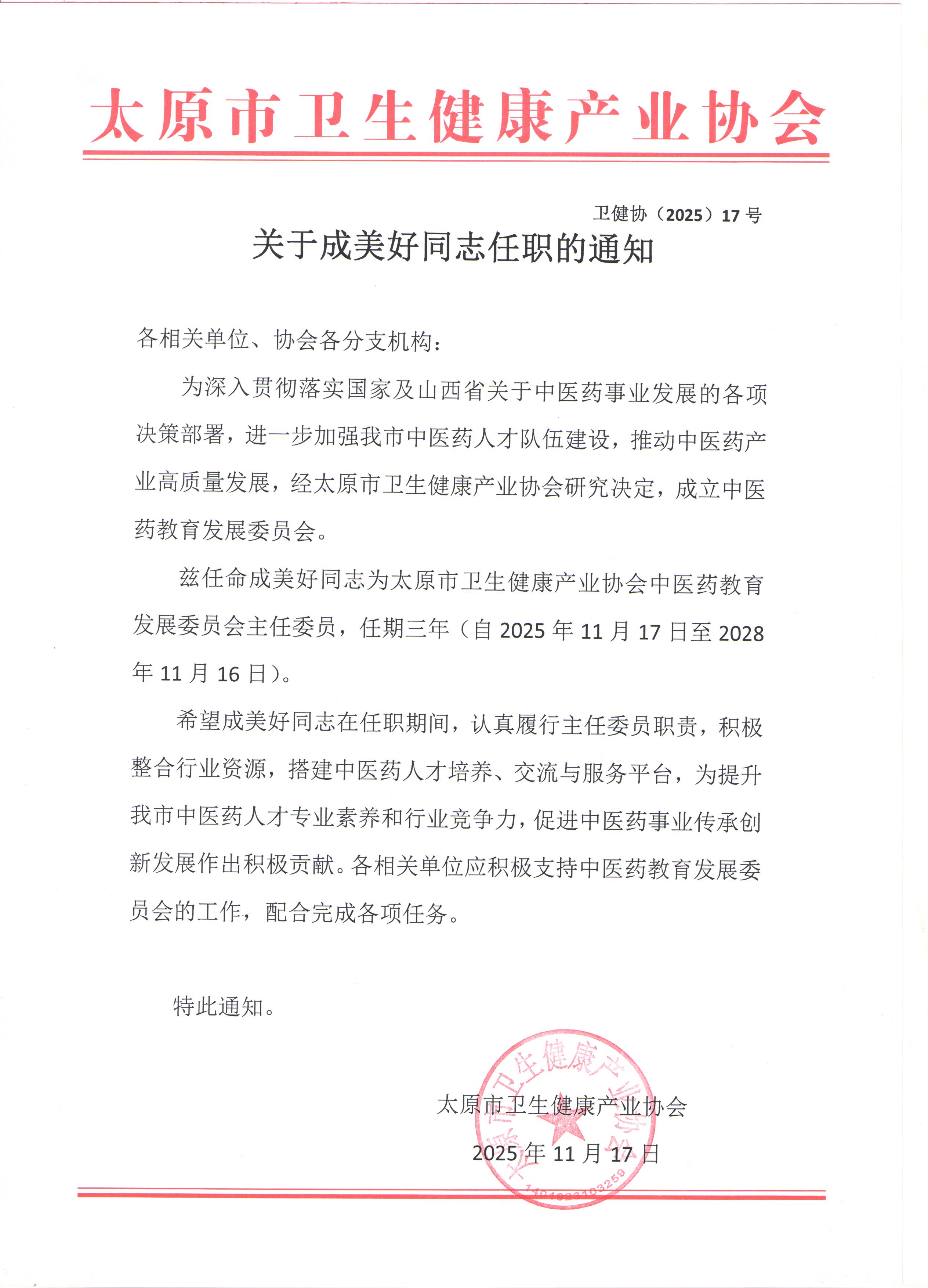关于成美好同志任职的通知